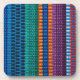 A traditional fabric weave pattern found in Guatemala. The design is bright and multicolored with red, blue, and yellow stripes. This is a photograph of fabric.