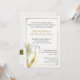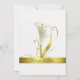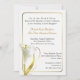 Elegant ivory coloured wedding invitation, with a thin gold tone frame and lovely graphics of a white and gold calla lily, in the lower left corner of the invitation. The back is also decorated with this lovely flower along with a gold tone band, with the bride and groom's names. Text in dark grey and golden brown is fully customisable to suit your needs. Pretty traditional style invitation, great for any season of the year.