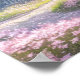This picturesque 13 by 19 inches poster captures a traditional Japanese house nestled in the heart of a blooming countryside. In the foreground, lush green grass is decorated with delicate pink flowers while a magnificent cherry blossom tree drapes its branches over part of the scene. Take a deep breath and let the tranquillity of this stunning landscape wash over you.