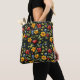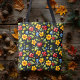 This tote bag showcases a traditional Khokhloma floral pattern with vibrant yellow, red, and blue flowers set against a rich black background. The design captures the essence of Russian folk art, offering a modern twist on a classic look. Ideal for those who appreciate cultural heritage and stylish accessories, this bag is perfect for everyday use or as a unique gift
