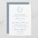 Invite your guests to your wedding with this traditional light blue invitation that features your initials inside a simple floral and classic wreath. All text areas can be customised to fit your unique wording. View the entire collection to create a cohesive wedding set.