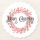 Traditional Merry Christmas Greeting Berry Wreath Paper Coaster