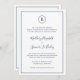 Simple Wedding Invitation with your monogram in a circle at the top and your wedding details surrounded by a thin border. Your names are in an elegant handwritten script font. All design elements are navy blue over a white background and may be changed in the design editing tool. The classic, traditional layout makes this invitation great for a formal wedding.