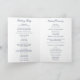 Classic style navy blue folded Wedding Program with accent words in an elegant calligraphy typography. The front has your event details, the inside has your wedding party and order of ceremony. The back has a template for your message / quotes. These Wedding Programs are perfect for a formal wedding.