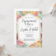 Introducing our stunning and traditional floral engagement party invitation, a timeless and elegant design perfect for any classic and romantic celebration. The centerpiece of this invitation is a beautiful diamond-like hexagon, bordered in gold, and featuring all of the essential information in a traditional and elegant script font. The hexagon's white backdrop creates a clean and polished look, providing a perfect contrast to the colourful floral pattern surrounding it.