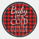 Beautiful, unique, classic, trendy, pretty and decorative red and black lumberjack tartan pattern design with a bright red and white border. And fun "Baby Its Cold Outside" quote text written in typography.