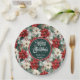 Traditional Red Green Christmas Floral Paper Plate