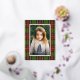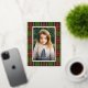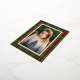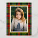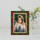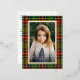 Traditional Red Green Plaid Merry Christmas Foil Holiday Postcard features a classic tartan plaid in red and green surrounding your family photo.