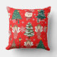 Traditional red Xmas design with text, Santa and Christmas trees Throw pillow for family.