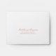 Simple Wedding RSVP Envelope featuring your names in an elegant calligraphy along with your return address. All text is in faux rose gold pink over a white background and may be changed to any colour you wish by clicking the "customise" button. This classic style Wedding RSVP Envelope with traditional calligraphy is perfect for a formal wedding.