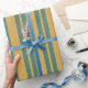 Traditional Stripe Pattern Teal Green and Mustard Wrapping Paper