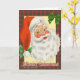 A very traditional Christmas card with a vintage Santa Clause, surrounded by a frame of red and green tartan (or plaid) with the traditional 'Merry Christmas' greeting underneath him. His red, chubby cheeks, white fluffy beard and big red and white santa hat adds a real retro feel to this card. There is also a green silk bow on the front, which is repeated inside the front of the card. The traditional message inside, which reads, "Wishing you a very merry Christmas" can be personalised to suit, or removed altogether if required.