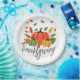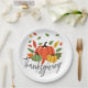 Celebrate Thanksgiving in style with this festive paper plate, designed to bring warmth and charm to your holiday table. The plate features a vibrant autumnal color palette, showcasing rich hues of orange, gold, and brown. At the center, a cheerful illustration of a classic Thanksgiving turkey is surrounded by fall leaves, pumpkins, and acorns, evoking the spirit of the season. Scalloped edges add a touch of elegance, while the sturdy construction ensures the plate can hold generous servings of your favorite Thanksgiving dishes. Perfect for family gatherings, potlucks, or school events, this Thanksgiving paper plate combines practicality and seasonal cheer, making every meal feel special.