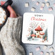 Traditional Watercolor Woodland Merry Christmas Square Paper Coaster