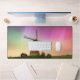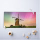 Photo desk mat with a traditional windmill under a colorful sky with Northern Lights (aurora borealis) and stars at night in the countryside at Leidschendam in the Netherlands (Europe). It’s very rare for the weather phenomenon to be experienced this far south.