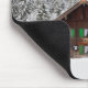 Mousepad with a traditional wooden log cabin house with green shutters in a forest in the snow in winter in Bavaria at the border between Germany and Austria.
