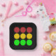 Stop red light, yellow caution yield light, go green with a bold jet black background colour.