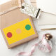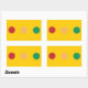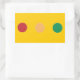 Painting of red, yellow and green circles is printed on rectangle stickers.
