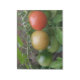This awesome notepad features a photograph of a bunch of ripening tomatoes including a red, orange and green cherry tomato in a line, growing on a tomato plant in a suburban garden. The photograph was taken using macro photography for a detailed result.