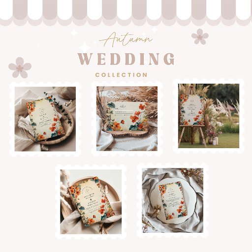 Celebrate your special day with this romantic fall design featuring watercolor trailing florals in warm orange tones. With a soft vintage background and botanical details, it’s perfect for an elegant autumn wedding. All text is fully customisable.
