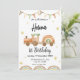 A calligraphy train 1st birthday invite is perfect for a simple birthday party. The neutral design features a minimalist card decorated with romantic and whimsical typography.