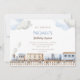 This train birthday invitation is a modern design based on a classic boy party theme and the cutest announcement ever! Decorated with an engine and three rail cars. Smoke billowing out the engine and a wooden train track. This birthday invite will be a special addition for any family that loves trains!