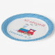 All aboard! Have a fun train themed birthday party with this bright and cheerful paper plate. Engineer stripes featured as the base pattern. Personalise the text and name. Coordinates with the entire Train Birthday Party Collection.