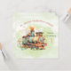 The cutest watercolor train engine inviting friends to a young boy's birthday party. This is the flat invitation version of this invitation, I have also made a postcard invitation replicating this one.