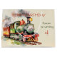 The cutest watercolor train engine inviting friends to a young boy's birthday party.