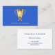 This bright blue business card has a golden coloured trophy on the front to signal achievement and success. The caption is "TRAINING TO SUCCEED" (editable for your preferred strapline).