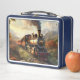 This is a standard metal lunchbox that appears to work just fine. We designed this box ourselves with an uploaded photo and custom text on the front and back. It looks absolutely beautiful except the front of the lunchbox is not centered like it shows in the photo. The print borders don't align with the inset flat part of the box where the preview photo online showed it perfectly centered in there. The back looks nice and centered though.