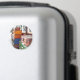 A simple watercolor design of a train station during wartime. Suitcases stacked on the platform waiting for the steam train to transport them to their destination. England.