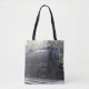 A tote bag featuring a photo of a train.