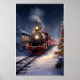 "Experience the thrill of train travel through a snowy wonderland with this captivating design. Journey alongside the locomotive as it navigates through snow-covered tracks, surrounded by the serene beauty of winter landscapes. Embrace the adventure and wonder of exploring new horizons in this special artwork."