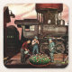 Train Yard Flower Garden by Stevan Dohanos Square Paper Coaster