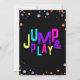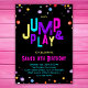 This trampoline jump & play birthday party invitation is part of a matching set of birthday party accessories. Your little one is going to enjoy every magical moment of her special day. This design features various shades of blue, green and yellow. You will find bright colours along with easy-to-read fonts, and plenty of space to add all of your unique information. For any special design needs, or unique party accessories, feel free to contact the designer, by sending an email to choosehappystudio@yahoo.com