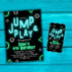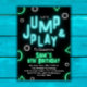This trampoline jump & play birthday party invitation is part of a matching set of birthday party accessories. Your little one is going to enjoy every magical moment of his special day. This design features various shades of blue, green and yellow. You will find bright colours along with easy-to-read fonts, and plenty of space to add all of your unique information. For any special design needs, or unique party accessories, feel free to contact the designer, by sending an email to choosehappystudio@yahoo.com