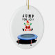 Creative trampoline Christmas holiday gift ornament for your favorite gymnast featuring the original "Jump for Joy" trampoline-jumping Santa Claus. To personalize edit text to add his or her name.