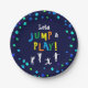 Trampoline park or bounce house birthday party paper plates. Check out the other matching party items in the JUMPPARTY Collection.