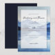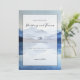 This elegant wedding invitation features a serene watercolor design with layered mountain silhouettes in varying shades of blue, creating a tranquil and dreamy atmosphere. The layout is vertically orientated with balanced spacing, showcasing sophisticated typography that combines script and serif fonts for a refined touch. Customisable elements allow for personalisation, while the cool colour palette enhances the overall mood of elegance and anticipation, making it perfect for couples seeking a sophisticated and inviting aesthetic for their special day.