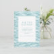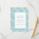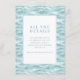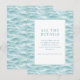 This wedding enclosure card features a serene and modern design with a central white square framed by a thin teal line, set against a textured background of wavy water in soft blues and turquoise. The minimalist style emphasizes clarity and simplicity, using elegant serif typography to highlight the main heading "ALL THE DETAILS" and guide guests to visit a customisable website for more information. The calming colour palette and abstract water representation create a tranquil mood, making it perfect for providing event details while evoking a sense of anticipation and elegance.