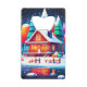 The subtle glow of small lights around the window accents the cosy ambiance of the wooden house, while the snowman joyfully stands at the gate, exhaling warmth into the air, symbolising the joy and happiness of the season.
