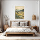 Immerse yourself in the peaceful beauty of rural Japan with this vintage-inspired travel poster featuring rice paddies, wooden houses, and distant mountains in soft muted hues.