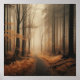Tranquil Foggy Trail Through Golden Autumn Poster