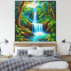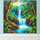 Serene waterfall amidst a vibrant jungle surrounded by tropical plants, showcasing natural beauty and tranquillity.