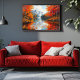 This painting captures a breathtaking autumn landscape featuring a serene lake surrounded by vibrant fall foliage. The golden and crimson leaves of birch and maple trees contrast beautifully against the cool blue waters, which reflect the brilliant colours of the season. Snow-capped mountains rise in the distance, adding depth and grandeur to the scene. Floating leaves gently drift across the lake’s surface, enhancing the peaceful and poetic atmosphere. The crisp air and warm hues evoke a perfect autumn day in nature’s embrace.