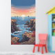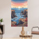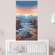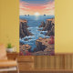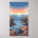 Tranquil pixelated sunrise over ocean with rocky poster