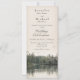 This evergreens on a lake slender vertical rustic wedding invitation card features a peaceful scene at the bottom third of the card composed of distant evergreens and rock structures reflected on the surface of a calm, lightly rippled body of water under an overcast sky from the point of view of a paddler sitting in a kayak on the water, and two eagles or ospreys can be seen flying above in the distance - the overcast sky blends into a soft, cream coloured gradient at the top portion of the card and creates the perfect space to customise your celebration details | image has the look of an antique photograph with sepia tone and edge vignetting | part of the Mountain Lake Rustic Wedding Collection by katz_d_zynes >> https://www.zazzle.com/collections/119499271518309609