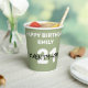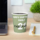 Elegant "Tranquil Sage" customisable birthday paper cup from our muted elegance collection. Classic design meets functionality. Personalizable: change the name, age, and photo. #custom-made #happybirthday #surpriseparty