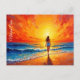 Tranquil shore walk sunset ocean bright art postcard